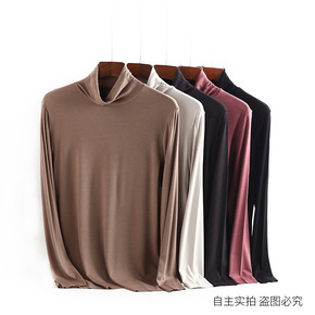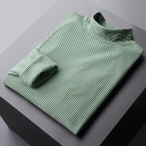 德绒保暖半高领中性打底衫阳离子男士秋冬间条T恤修身...