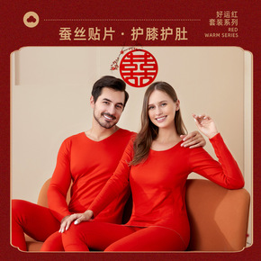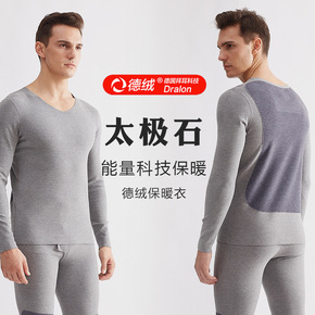 高端蚕丝保暖内衣男士无痕德绒发热套装双面绒磨毛V领...