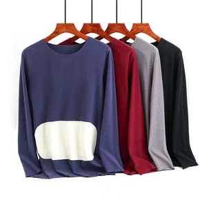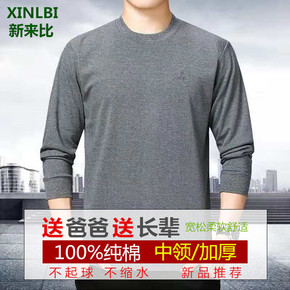男士秋衣圆领莱卡棉打底衣宽松薄款长袖上衣单件基础内...