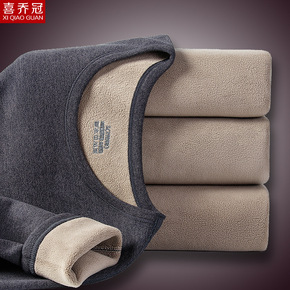 秋冬男装加绒保暖内衣男士针织衫圆领毛衣男外穿打底上...