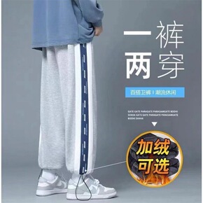 港风运动裤子男秋冬季宽松百搭大码加绒加厚保暖束脚休...