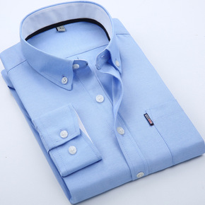 领道诺帝卡牛津纺衬衫男装青年上衣长袖衬衣纯色批发休...