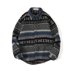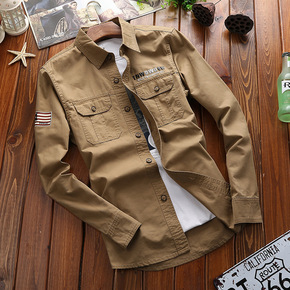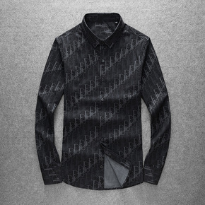 欧码 男士长袖衬衫 时尚外贸个性印花上衣青年长袖商...
