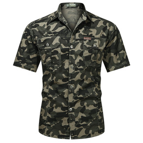 2021跨境新款夏季男士军装迷彩衬衫跨境户外短袖上...
