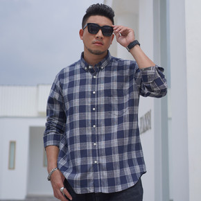 男装加大码胖子加肥长袖衬衫正装格子肥佬宽松休闲棉衬...