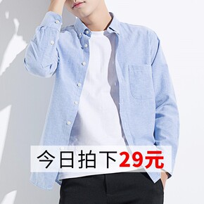 春季男士牛津纺长袖白衬衫韩版潮流青年寸休闲棉衬衣...