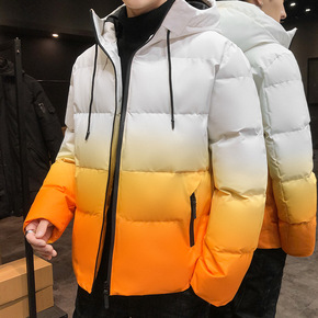 短款连帽外套冬季潮牌撞色渐变棉服潮牌超火ins棉衣...