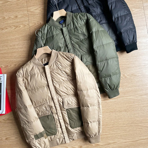 秋冬男士休闲机能袋拼色棒球领轻薄款90白鸭绒羽绒服...