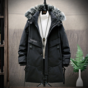 羽绒服男2020冬装新款男士加厚中长款连帽白鸭绒迷...