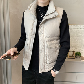 冬装新款青年立领羽绒马甲男短款上衣潮帅气保暖面包服...