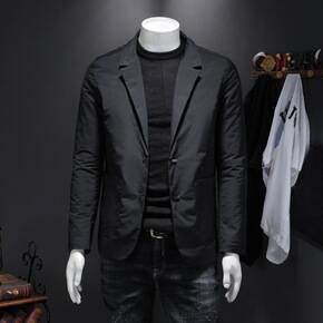 白鸭绒冬季新款西装领羽绒服男加厚保暖韩版潮流帅气男...