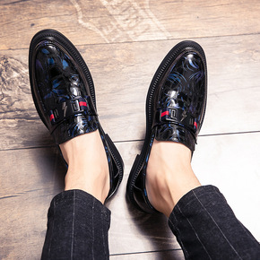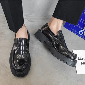 皮鞋男发型师英伦休闲鞋漆皮内增高尖头男士皮鞋一脚蹬...