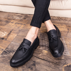 皮鞋男新款流苏休闲小皮鞋韩版发型师内增高潮鞋英伦低...