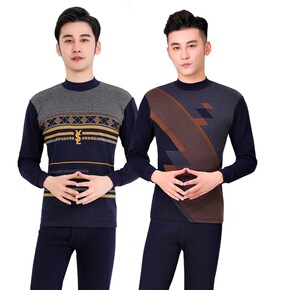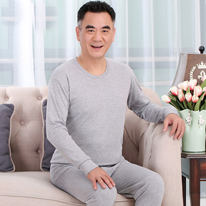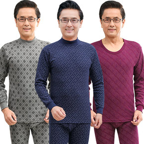 爸爸保暖内衣套装男纯棉中老年人棉毛衫爷爷秋衣秋裤中...