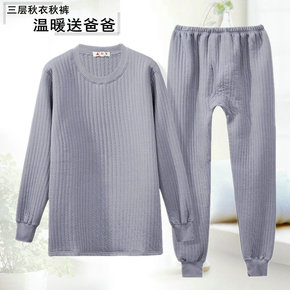 中老年内衣秋冬加厚三层保暖男圆领宽松纯棉爸爸夹棉秋...
