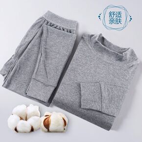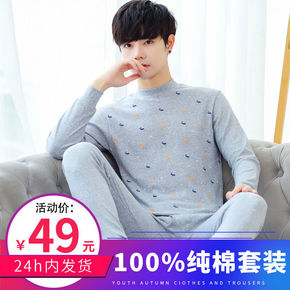 中青年秋衣秋裤套装纯棉男士薄款保暖内衣打底棉毛衫青...