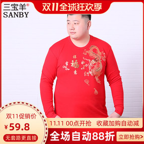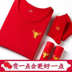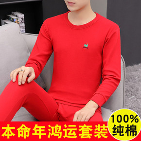 本命年大红色秋衣秋裤套装 男全棉薄款款保暖内衣加肥...