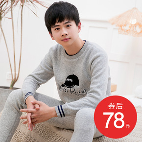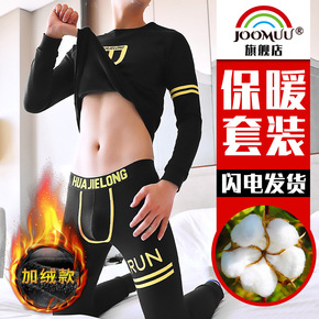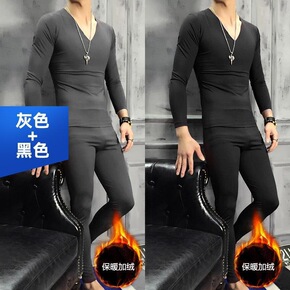 潮牌加绒加厚青年保暖内衣套装时尚潮男纯色透气毛衣毛...