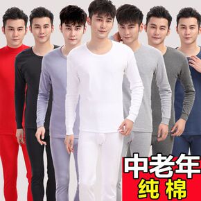 春秋衣秋裤男纯棉大码爸爸男土保暖打底内衣裤套装薄款...