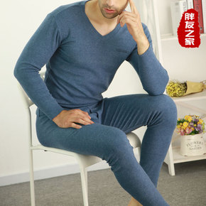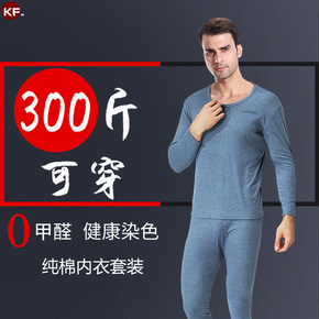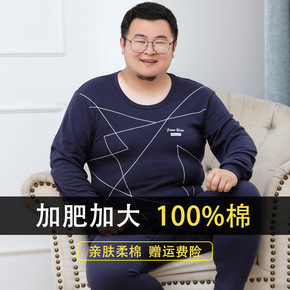 大码全棉秋衣秋裤中青年加肥加大内衣套装胖子薄款纯棉...