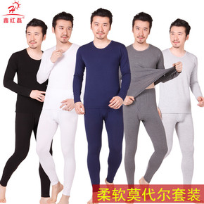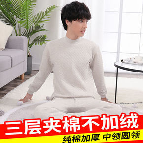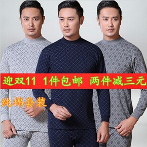 内衣秋冬男士秋衣秋裤纯棉全棉圆领中厚保暖棉毛衫套装...