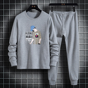 男士秋衣秋裤套装纯棉保暖贴身内衣青年内穿棉毛衫宽松...