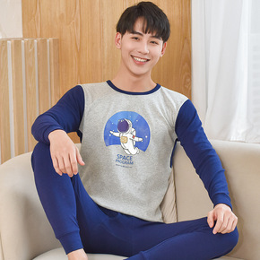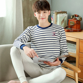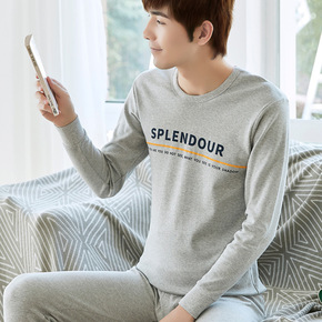 纯棉男士秋衣秋裤套装青少年衣裤棉毛衫秋冬薄款全棉保...