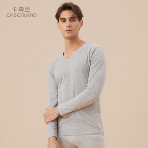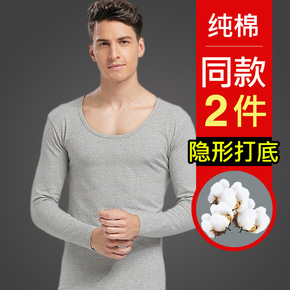 男士保暖内衣纯棉秋衣薄款单件上衣低领打底全棉毛衫上...
