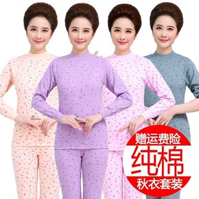 中年秋衣秋裤纯棉春秋季老人保暖内衣男士套装薄款中圆...