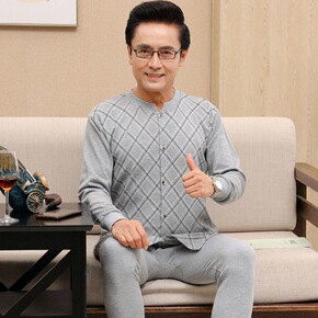 中老年秋衣秋裤男纯棉套装老人开衫男士保暖内衣棉毛衫...