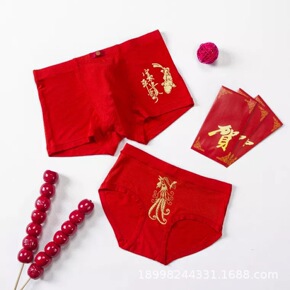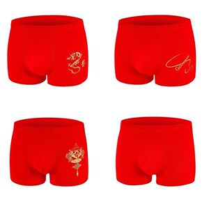 本命年大红色男士内裤棉男平角裤婚庆喜事中腰透气四角...