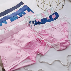 长期现货 可爱猪猪情侣内裤 牛奶丝男平角裤女高叉三...