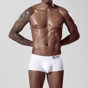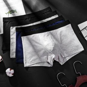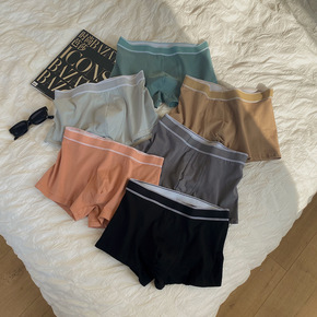 三罐男士超高弹性锦纶纯色中腰平角裤四角透气短裤头с...