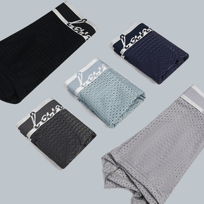 男士夏季冰丝网孔布拼接橡筋头平角裤透气纯色无痕...