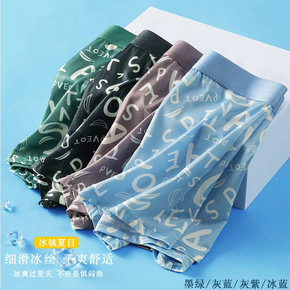 夏季薄款男士冰丝内裤男平角裤中腰印花透气四角裤字母...