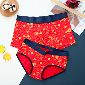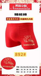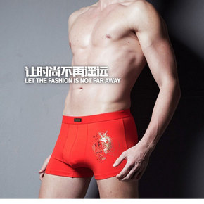 透气本命年牛红内裤男士纯棉内裤印花内裤纯棉舒适四角...