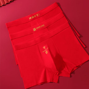 送男友本命年属虎男士红内裤男纯棉平角裤大红色四角裤...