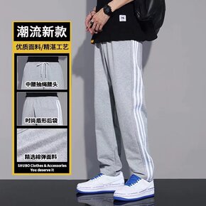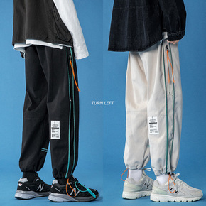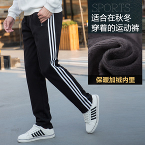 男装2021秋冬新款加厚休闲裤男韩版潮流条纹拼接束...