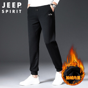 秋冬加绒加厚休闲大码运动束脚裤抽绳裤男士运动裤劳保...