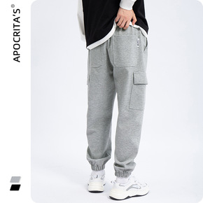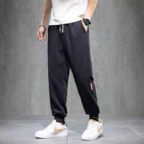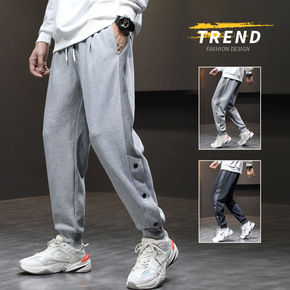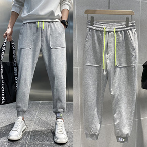 港风男装2022冬季新款男士小脚九分裤宽松休闲卫裤...