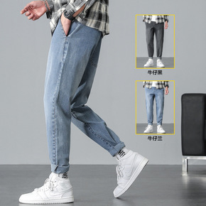 M-4XL男士休闲牛仔裤春秋新款韩版潮流青少年纯色...