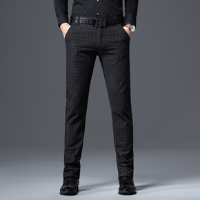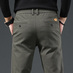 2021秋冬休闲长裤男士棉微弹修身小直筒商务格子休...