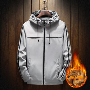 男士夹克潮男秋冬款修身简约男生连帽男装学生外衣加绒...