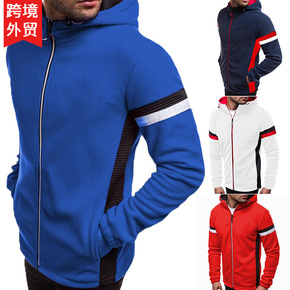跨境欧美码男士青年新款秋冬季连帽夹克休闲时尚运动拉...