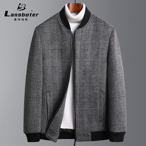 秋冬羊毛呢夹克男士加棉加厚棒球领中青年羊毛妮子茄克...