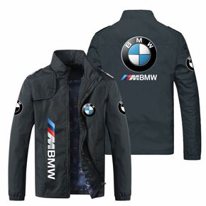 秋冬外套宽松型拉链挖袋立领夹克男个性车标外套休闲外...