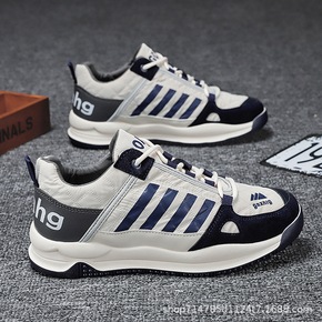 2020新款皮面男士运动风休闲鞋学生跑步气垫单鞋时...