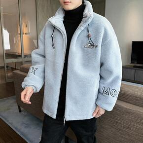 男士冬季新款加厚羊羔绒棉服韩版宽松青年潮牌摇粒绒棉...