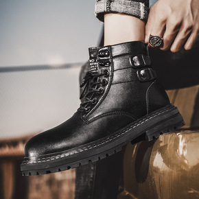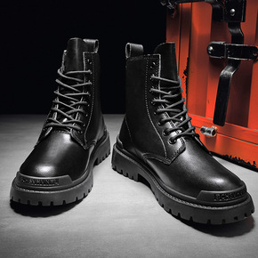 马丁靴男英伦风中帮工装靴子冬季加绒高帮皮鞋雪地靴韩...