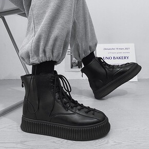 港风马丁靴男士秋冬加绒高帮工装鞋子雪地靴学生短靴平...